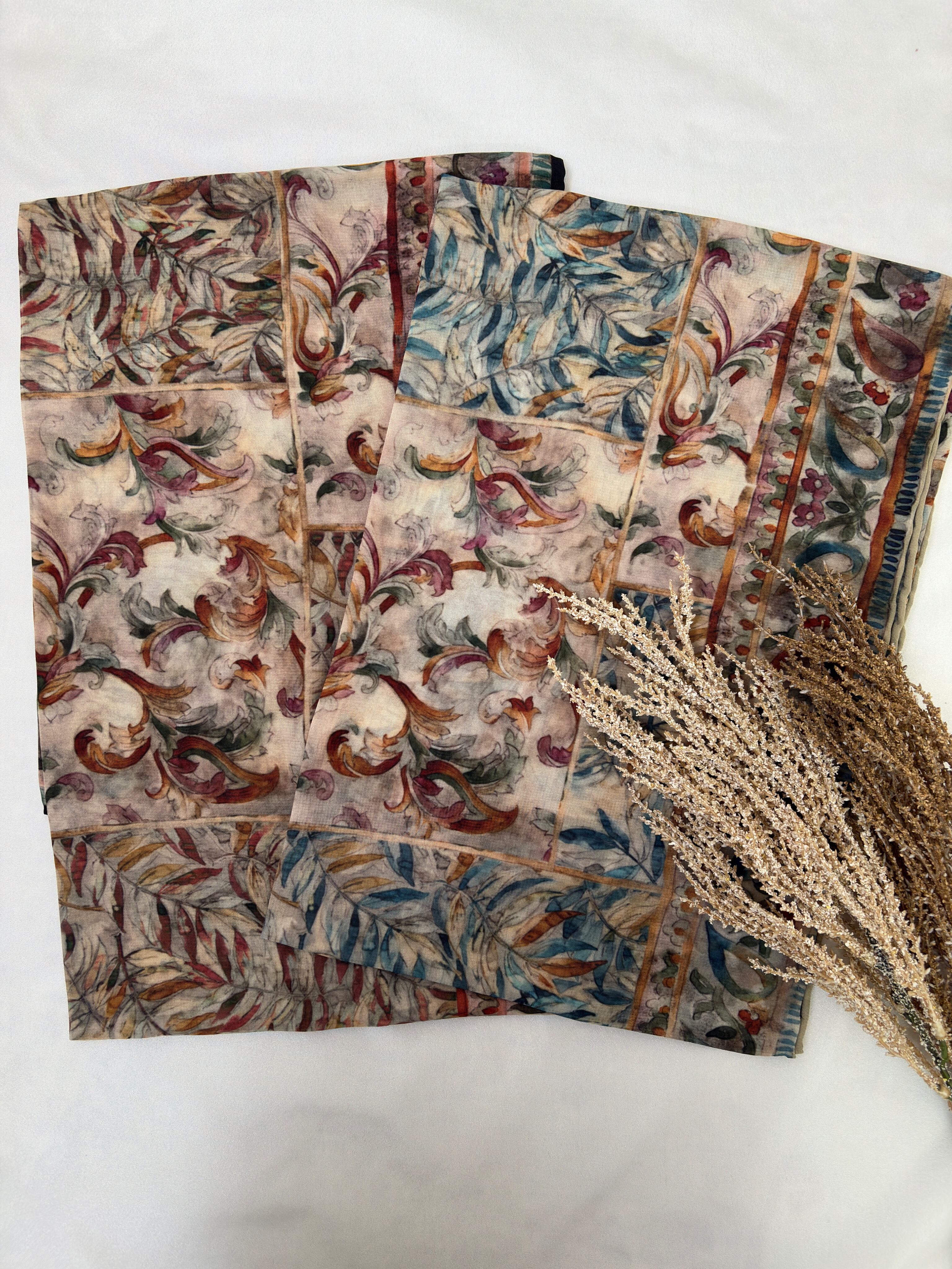 روسری کرپ نخی زمزمه برگها