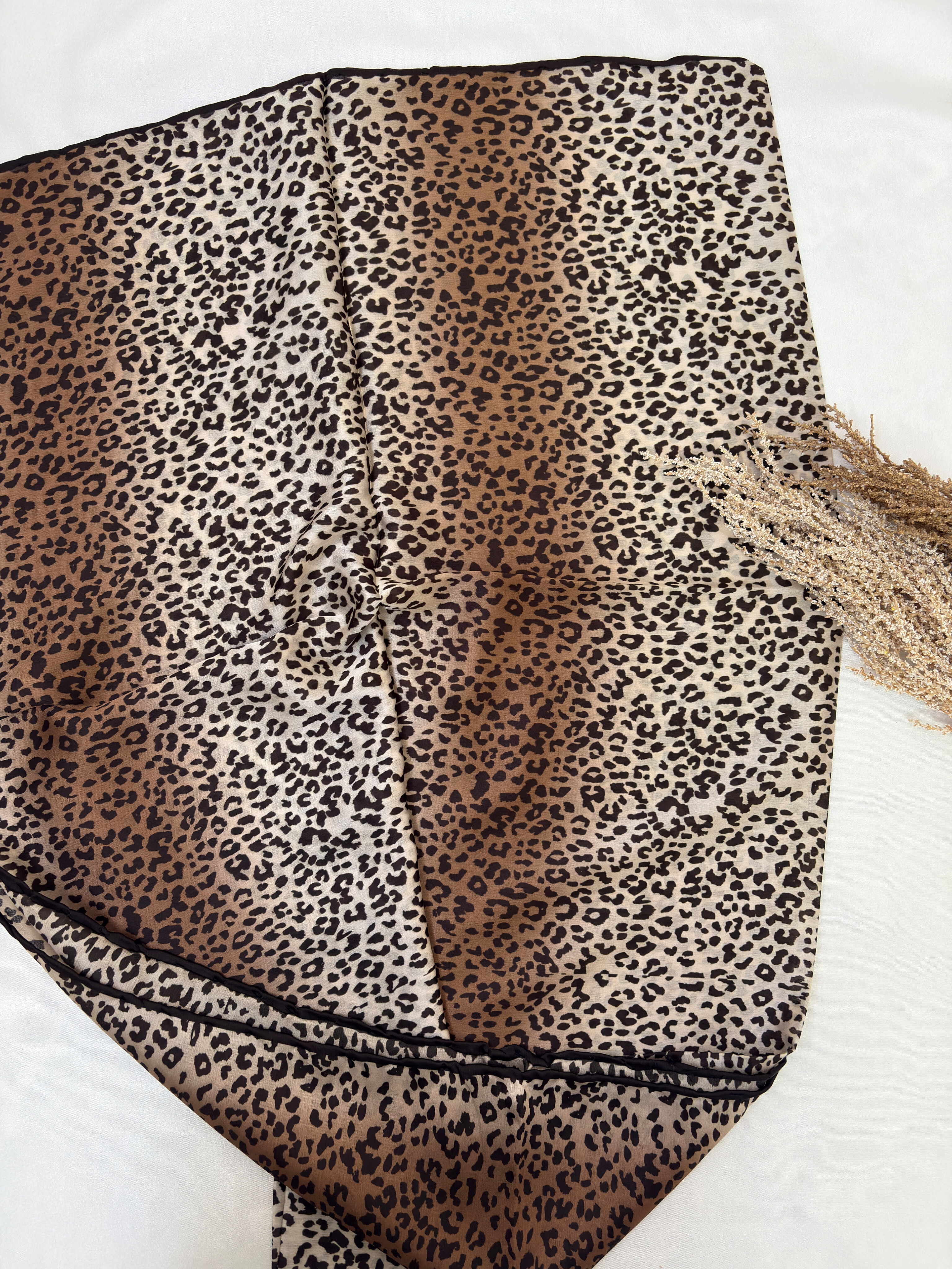 دستهبندی: روسری ابریشمطرح: پلنگی نوار قهوه ایابعاد: عرض ۱۱۰جزئیات: تک رنگ و ایستایی خوبجنس: ابریشم مامی